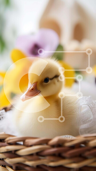 Intra Συλλεκτικό Ξύλινο Παζλ Plywood 4mm – Αξιολάτρευτο κίτρινο παπάκι σε ένα καλάθι με λουλούδια Σε Ξύλινο Κουτί – Διαστάσεις: 10×10 cm – 25 κομμάτια