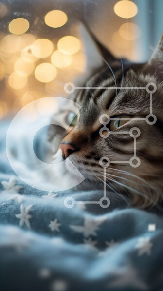 Intra Συλλεκτικό Ξύλινο Παζλ Plywood 4mm – Αξιολάτρευτη γάτα που ξαπλώνει σε μια ζεστή μπλε κουβέρτα Σε Ξύλινο Κουτί – Διαστάσεις: 10×10 cm – 25 κομμάτια