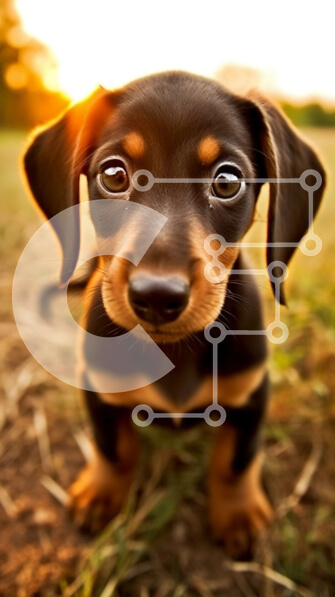 Intra Συλλεκτικό Ξύλινο Παζλ Plywood 4mm – Αξιολάτρευτο σκυλί Dachshund που κοιτάζει την κάμερα σε ένα όμορφο τοπίο ηλιοβασιλέματος Σε Ξύλινο Κουτί – Διαστάσεις: 10×10 cm – 25 κομμάτια