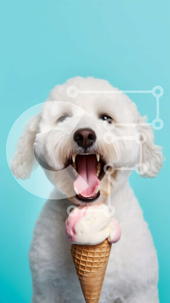 Intra Συλλεκτικό Ξύλινο Παζλ Plywood 4mm – Αξιολάτρευτη εικόνα ενός λευκού σκύλου με ένα ροζ χωνάκι παγωτού Σε Ξύλινο Κουτί – Διαστάσεις: 10×10 cm – 25 κομμάτια