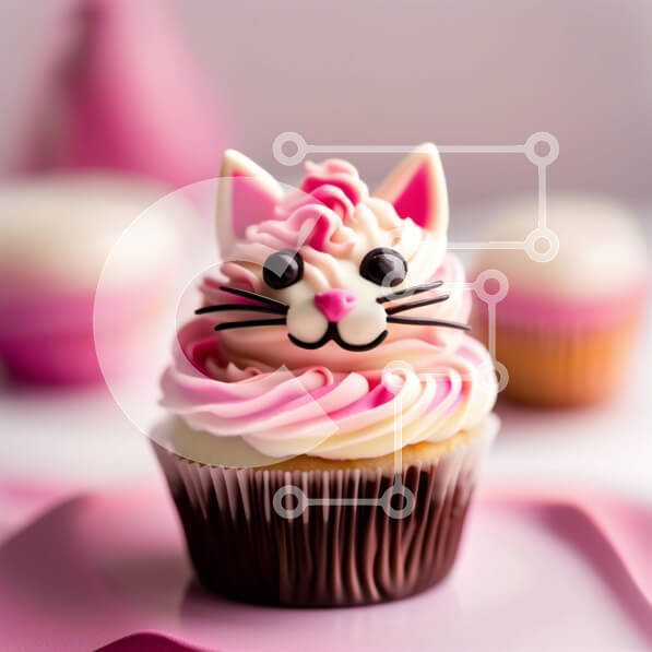 Intra Συλλεκτικό Ξύλινο Παζλ Plywood 4mm – Αξιολάτρευτο ροζ και λευκό cupcake με ένα χαριτωμένο πρόσωπο γάτας Σε Ξύλινο Κουτί – Διαστάσεις: 10×10 cm – 25 κομμάτια