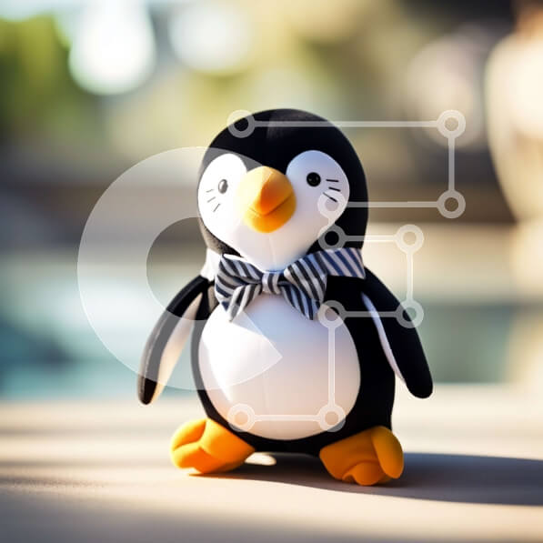 Intra Συλλεκτικό Ξύλινο Παζλ Plywood 4mm – Αξιολάτρευτη εικόνα ενός γεμισμένου παιχνιδιού πιγκουίνου με παπιγιόν Σε Ξύλινο Κουτί – Διαστάσεις Puzzle: 10×10 cm – 25 κομμάτια