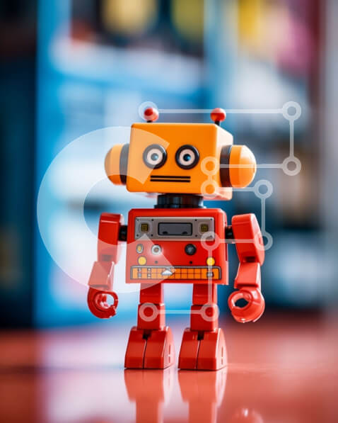 Intra Συλλεκτικό Ξύλινο Παζλ Plywood 4mm – Αξιολάτρευτο παιχνίδι ρομπότ με χαμογελαστό πρόσωπο σε κόκκινο τραπέζι Σε Ξύλινο Κουτί – Διαστάσεις: 10×10 cm – 25 κομμάτια