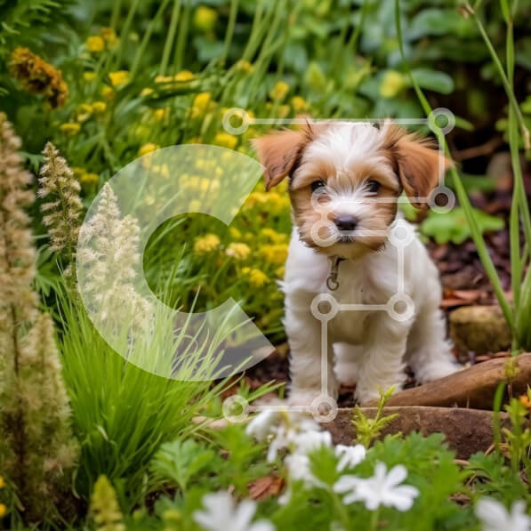 Intra Συλλεκτικό Ξύλινο Παζλ Plywood 4mm – Αξιολάτρευτο σκυλί σε έναν όμορφο κήπο με πολύχρωμα λουλούδια και φυτά Σε Ξύλινο Κουτί – Διαστάσεις: 10×10 cm – 25 κομμάτια