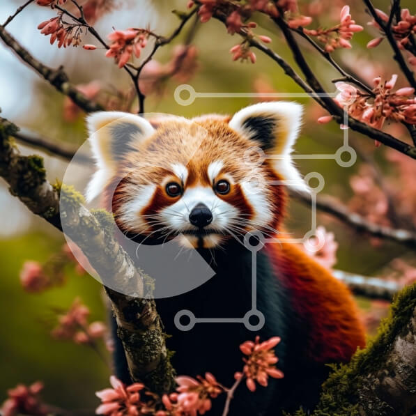 Intra Συλλεκτικό Ξύλινο Παζλ Plywood 4mm – Αξιολάτρευτη εικόνα ενός κόκκινου Panda που κάθεται σε ένα κλαδί σε ένα ανθισμένο δέντρο Σε Ξύλινο Κουτί – Διαστάσεις: 10×10 cm – 25 κομμάτια