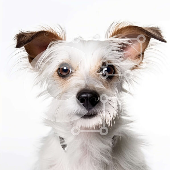 Intra Συλλεκτικό Ξύλινο Παζλ Plywood 4mm – Αξιολάτρευτο λευκό σκυλί με καφέ μπαλώματα που κοιτάζει περίεργα την κάμερα Σε Ξύλινο Κουτί – Διαστάσεις: 10×10 cm – 25 κομμάτια