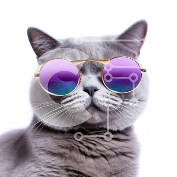 Intra Συλλεκτικό Ξύλινο Παζλ Plywood 4mm – Αξιολάτρευτη γκρίζα γάτα που φορά μοβ γυαλιά ηλίου – Φωτογραφία Αρχείου Σε Ξύλινο Κουτί – Διαστάσεις: 10×10 cm – 25 κομμάτια