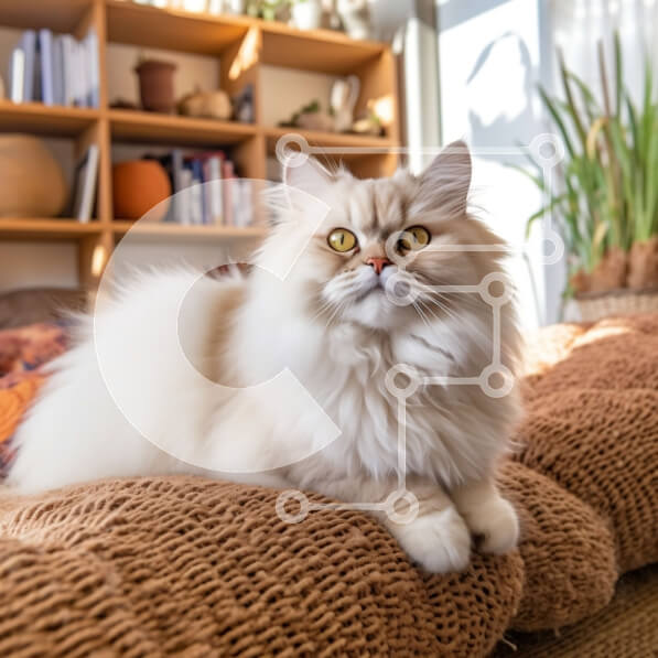 Intra Συλλεκτικό Ξύλινο Παζλ Plywood 4mm – Αξιολάτρευτη εικόνα μιας χνουδωτής γάτας σε έναν καφέ καναπέ με ράφι στο φόντο Σε Ξύλινο Κουτί – Διαστάσεις: 10×10 cm – 25 κομμάτια