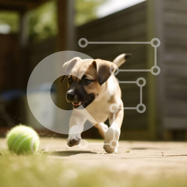 Intra Συλλεκτικό Ξύλινο Παζλ Plywood 4mm – Αξιολάτρευτη εικόνα ενός σκύλου που τρέχει προς μια μπάλα Σε Ξύλινο Κουτί – Διαστάσεις: 10×10 cm – 25 κομμάτια