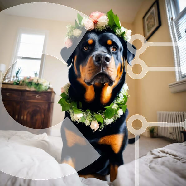 Intra Συλλεκτικό Ξύλινο Παζλ Plywood 4mm – Αξιολάτρευτο σκυλί με λουλουδιές στο κεφάλι Σε Ξύλινο Κουτί – Διαστάσεις: 10×10 cm – 25 κομμάτια