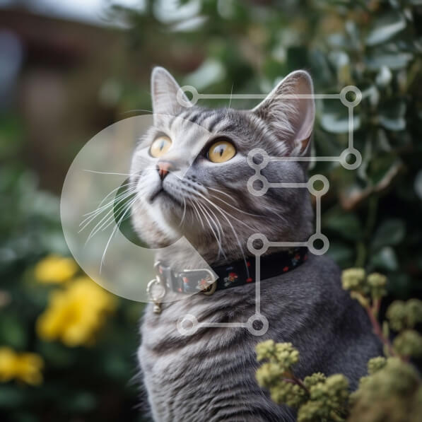 Intra Συλλεκτικό Ξύλινο Παζλ Plywood 4mm – Αξιολάτρευτη γκρίζα γάτα με κολάρο και κίτρινα μάτια Σε Ξύλινο Κουτί – Διαστάσεις: 10×10 cm – 25 κομμάτια
