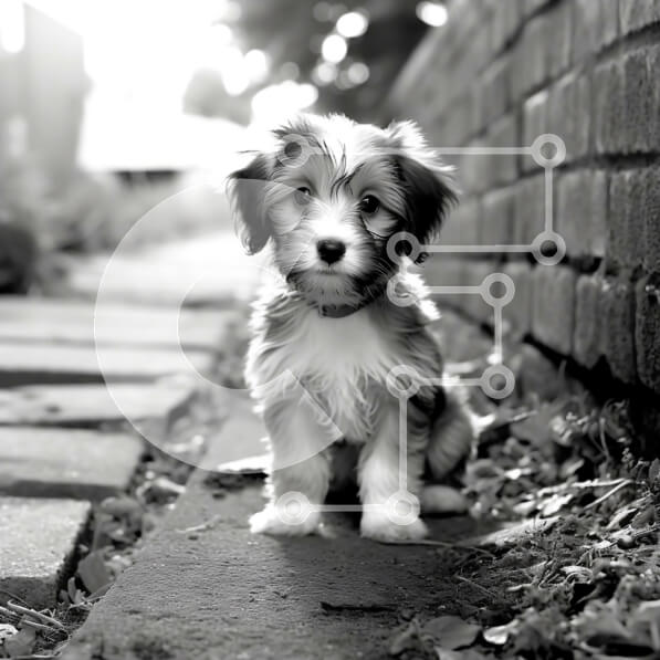 Intra Συλλεκτικό Ξύλινο Παζλ Plywood 4mm – Αξιολάτρευτη εικόνα ενός μικρού σκύλου που κάθεται μπροστά από έναν τοίχο από τούβλα Σε Ξύλινο Κουτί – Διαστάσεις: 10×10 cm – 25 κομμάτια