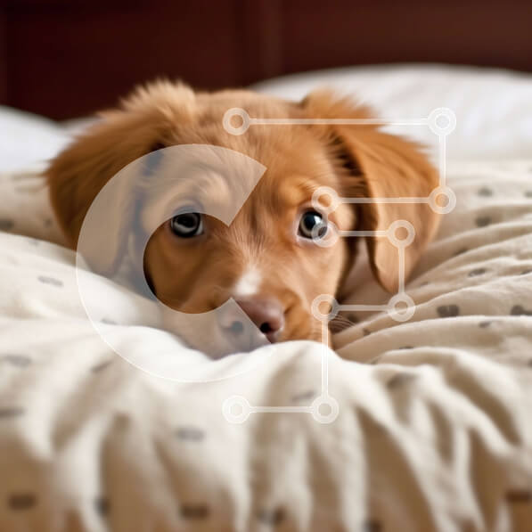 Intra Συλλεκτικό Ξύλινο Παζλ Plywood 4mm – Αξιολάτρευτο καφέ σκυλί με μεγάλα καστανά μάτια ξαπλωμένο σε ένα λευκό κρεβάτι Σε Ξύλινο Κουτί – Διαστάσεις: 10×10 cm – 25 κομμάτια