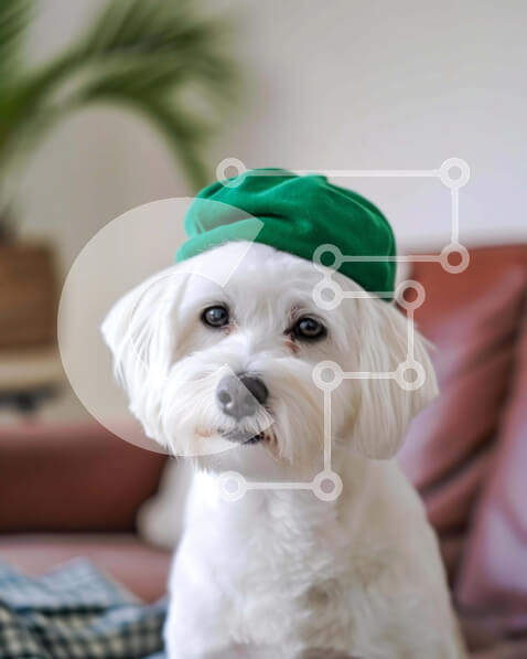 Intra Συλλεκτικό Ξύλινο Παζλ Plywood 4mm – Αξιολάτρευτο λευκό σκυλί με πράσινο καπέλο μπερέ Σε Ξύλινο Κουτί – Διαστάσεις: 10×10 cm – 25 κομμάτια