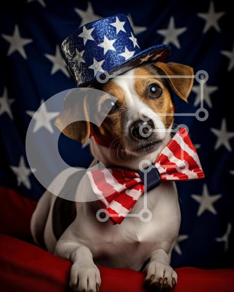 Intra Συλλεκτικό Ξύλινο Παζλ Plywood 4mm – Αξιολάτρευτο σκυλί με ενδυμασία με θέμα την αμερικανική σημαία Σε Ξύλινο Κουτί – Διαστάσεις: 10×10 cm – 25 κομμάτια