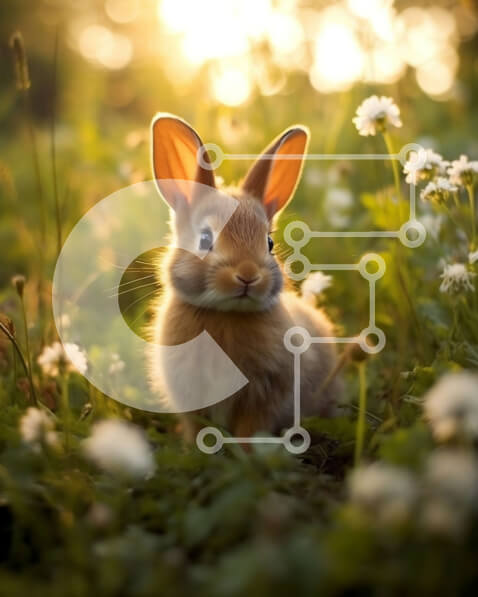 Intra Συλλεκτικό Ξύλινο Παζλ Plywood 4mm – Αξιολάτρευτη εικόνα ενός μικρού καφέ κουνελιού σε ένα χωράφι με λευκά λουλούδια στο ηλιοβασίλεμα Σε Ξύλινο Κουτί – Διαστάσεις: 10×10 cm – 25 κομμάτια
