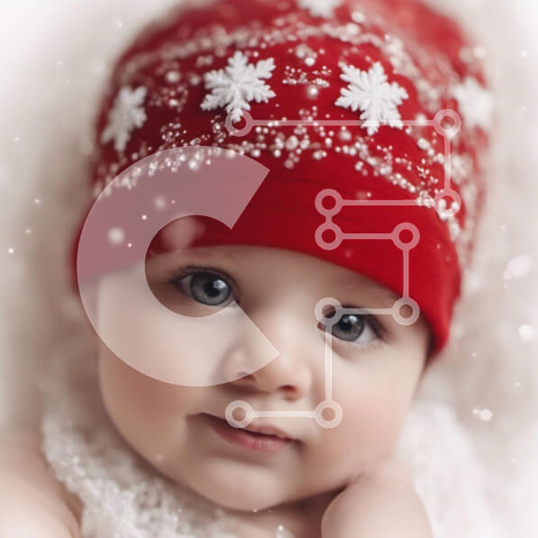 Intra Συλλεκτικό Ξύλινο Παζλ Plywood 4mm – Αξιολάτρευτο μωρό που φορά κόκκινο φασόλι με νιφάδες χιονιού Σε Ξύλινο Κουτί – Διαστάσεις Puzzle: 10×10 cm – 25 κομμάτια