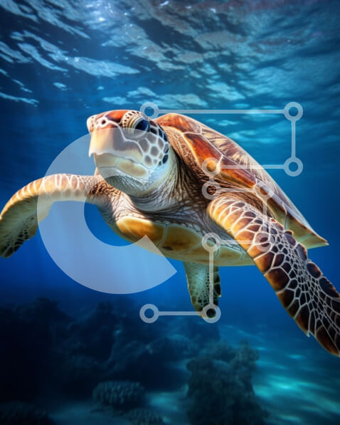 Intra Συλλεκτικό Ξύλινο Παζλ Plywood 4mm – Απειλούμενη πράσινη θαλάσσια χελώνα που κολυμπά στον ωκεανό Σε Ξύλινο Κουτί – Διαστάσεις: 10×10 cm – 25 κομμάτια