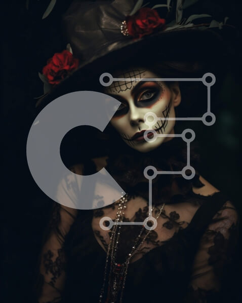 Intra Συλλεκτικό Ξύλινο Παζλ Plywood 4mm – Αποκριάτικο πορτρέτο μιας γυναίκας με σκελετό κοστούμι και κόκκινα τριαντάφυλλα Σε Ξύλινο Κουτί – Διαστάσεις Puzzle: 10×10 cm – 25 κομμάτια