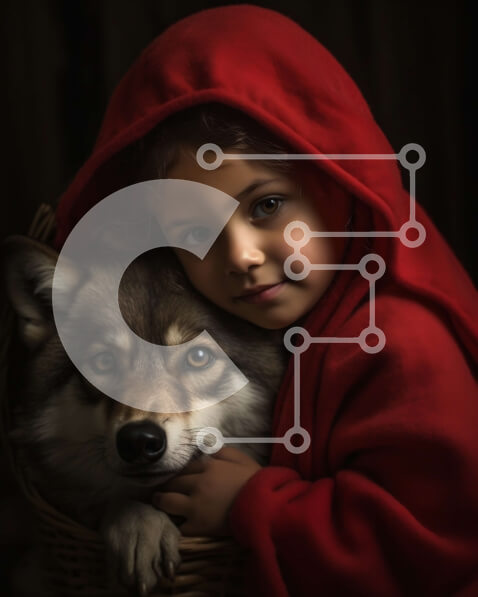Intra Συλλεκτικό Ξύλινο Παζλ Plywood 4mm – Απόκοσμη εικόνα νεαρού κοριτσιού που αγκαλιάζει τον λύκο στο σκοτεινό δάσος Σε Ξύλινο Κουτί – Διαστάσεις Puzzle: 10×10 cm – 25 κομμάτια