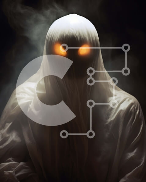 Intra Συλλεκτικό Ξύλινο Παζλ Plywood 4mm – Απόκοσμο φάντασμα με λαμπερά πορτοκαλί μάτια στο σκοτάδι Σε Ξύλινο Κουτί – Διαστάσεις: 10×10 cm – 25 κομμάτια