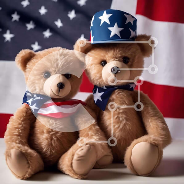 Intra Συλλεκτικό Ξύλινο Παζλ Plywood 4mm – Αρκουδάκια με καπέλα αμερικανικής σημαίας Σε Ξύλινο Κουτί – Διαστάσεις Puzzle: 10×10 cm – 25 κομμάτια