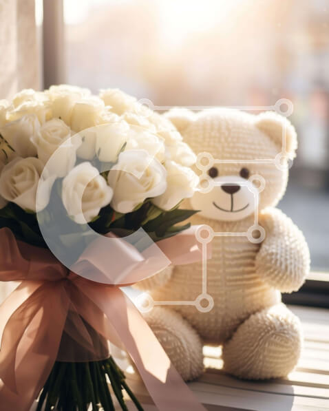 Intra Συλλεκτικό Ξύλινο Παζλ Plywood 4mm – Αρκουδάκι και λευκά τριαντάφυλλα στο περβάζι του παραθύρου Σε Ξύλινο Κουτί – Διαστάσεις Puzzle: 10×10 cm – 25 κομμάτια