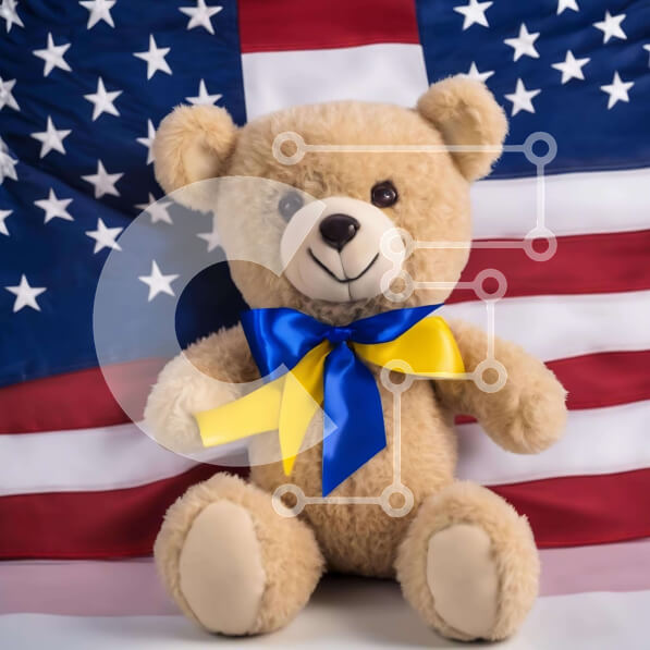 Intra Συλλεκτικό Ξύλινο Παζλ Plywood 4mm – Αρκουδάκι μπροστά από την αμερικανική σημαία Σε Ξύλινο Κουτί – Διαστάσεις Puzzle: 10×10 cm – 25 κομμάτια