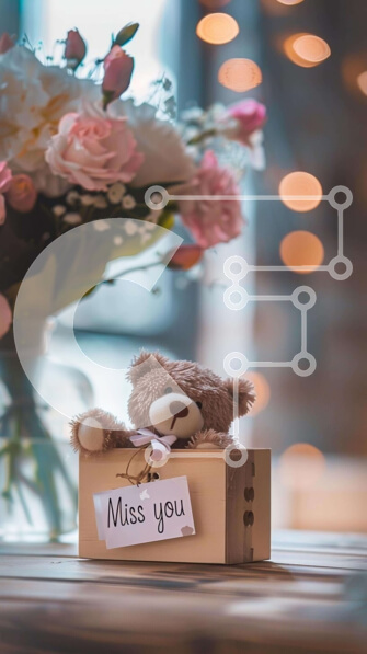 Intra Συλλεκτικό Ξύλινο Παζλ Plywood 4mm – Αρκουδάκι και λουλούδια με τη σημείωση “Miss You”. Σε Ξύλινο Κουτί – Διαστάσεις Puzzle: 10×10 cm – 25 κομμάτια