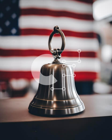 Intra Συλλεκτικό Ξύλινο Παζλ Plywood 4mm – Ασημένιο κουδούνι με αμερικανική σημαία στο τραπέζι Σε Ξύλινο Κουτί – Διαστάσεις: 10×10 cm – 25 κομμάτια