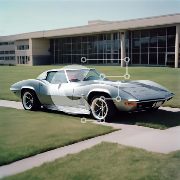 Intra Συλλεκτικό Ξύλινο Παζλ Plywood 4mm – Ασημένιο σπορ αυτοκίνητο σταθμευμένο μπροστά από ένα κτίριο γραφείων Σε Ξύλινο Κουτί – Διαστάσεις Puzzle: 10×10 cm – 25 κομμάτια