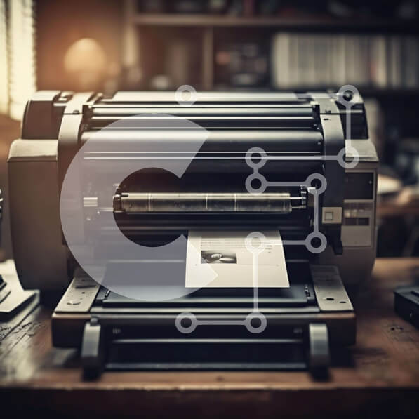 Intra Συλλεκτικό Ξύλινο Παζλ Plywood 4mm – Ασπρόμαυρος εκτυπωτής σε ξύλινο γραφείο με αναλώσιμα γραφείου Σε Ξύλινο Κουτί – Διαστάσεις Puzzle: 10×10 cm – 25 κομμάτια
