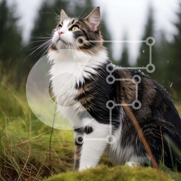Intra Συλλεκτικό Ξύλινο Παζλ Plywood 4mm – Ασπρόμαυρη γάτα που περιμένει στο γρασίδι κάτω από το συννεφιασμένο ουρανό Σε Ξύλινο Κουτί – Διαστάσεις: 10×10 cm – 25 κομμάτια