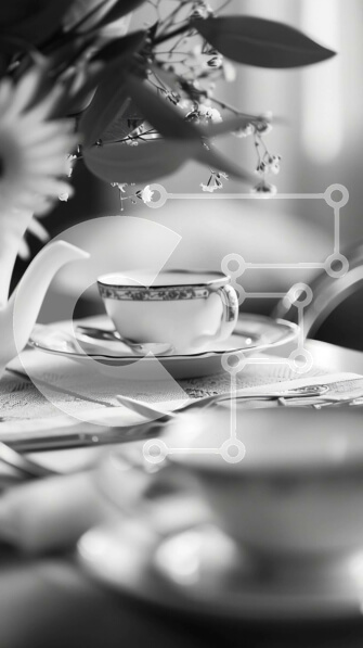 Intra Συλλεκτικό Ξύλινο Παζλ Plywood 4mm – Ασπρόμαυρο Σετ τραπεζιού με φλιτζάνια τσαγιού και λουλούδια Σε Ξύλινο Κουτί – Διαστάσεις Puzzle: 10×10 cm – 25 κομμάτια