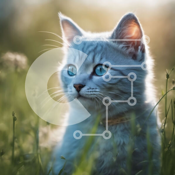 Intra Συλλεκτικό Ξύλινο Παζλ Plywood 4mm – Αφράτη γκρίζα γάτα σε ένα χωράφι με ψηλό πράσινο γρασίδι Σε Ξύλινο Κουτί – Διαστάσεις: 10×10 cm – 25 κομμάτια