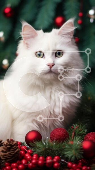 Intra Συλλεκτικό Ξύλινο Παζλ Plywood 4mm – Αφράτη λευκή γάτα που περιβάλλεται από χριστουγεννιάτικα στολίδια Σε Ξύλινο Κουτί – Διαστάσεις: 10×10 cm – 25 κομμάτια