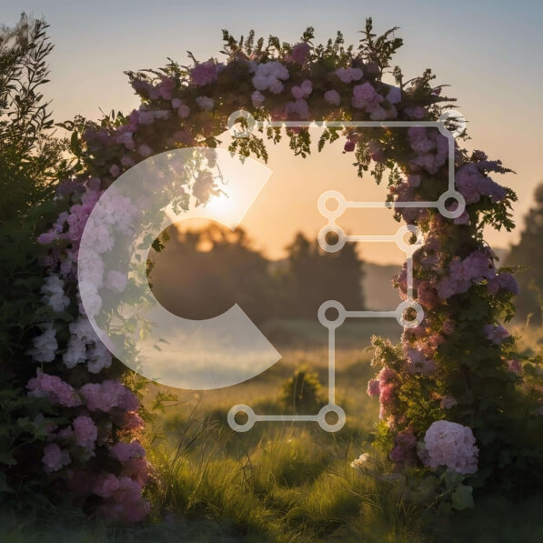 Intra Συλλεκτικό Ξύλινο Παζλ Plywood 4mm – Αψίδα με ροζ λουλούδια στο ηλιοβασίλεμα Σε Ξύλινο Κουτί – Διαστάσεις Puzzle: 10×10 cm – 25 κομμάτια