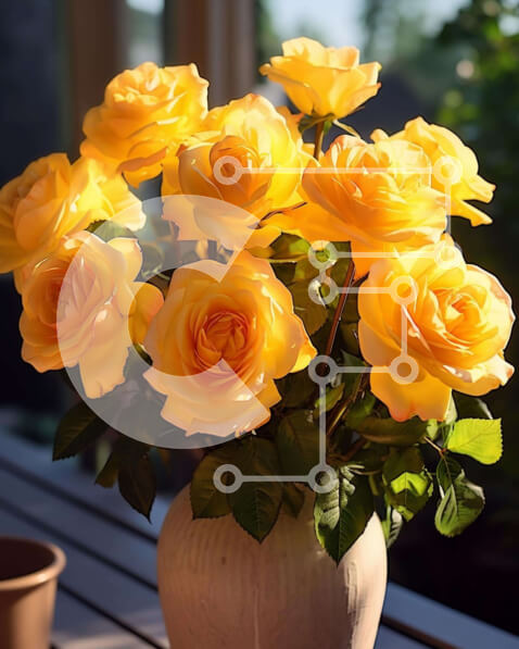 Intra Συλλεκτικό Ξύλινο Παζλ Plywood 4mm – Βάζο με κίτρινα τριαντάφυλλα και φυτό σε γλάστρα Σε Ξύλινο Κουτί – Διαστάσεις: 10×10 cm – 25 κομμάτια