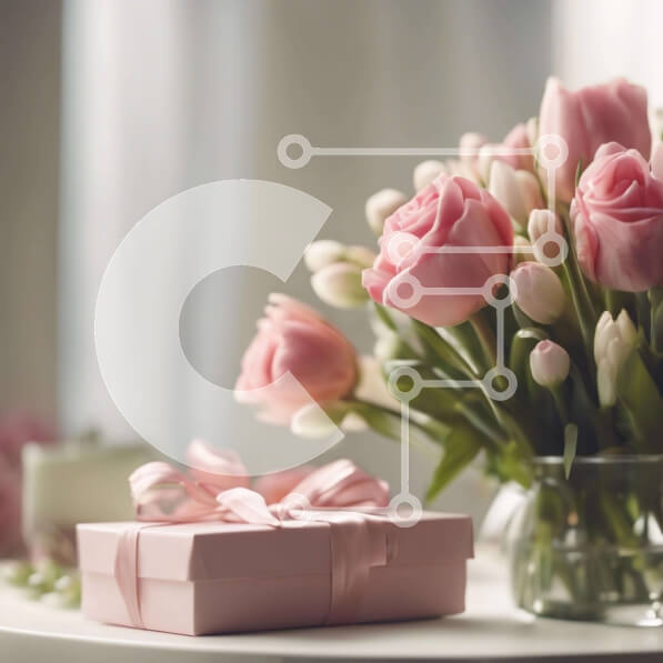Intra Συλλεκτικό Ξύλινο Παζλ Plywood 4mm – Βάζο με ροζ τριαντάφυλλα και ανοιχτό κουτί δώρου στο τραπέζι Σε Ξύλινο Κουτί – Διαστάσεις: 10×10 cm – 25 κομμάτια