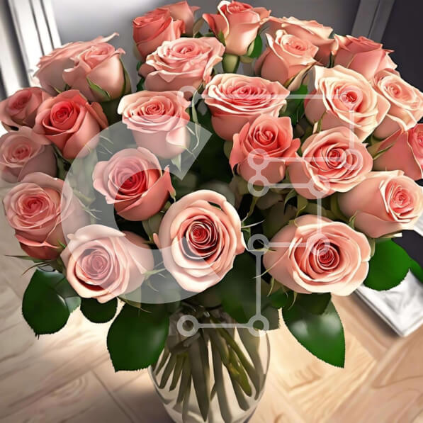 Intra Συλλεκτικό Ξύλινο Παζλ Plywood 4mm – Βάζο με ροζ τριαντάφυλλα, παιώνιες, γαρύφαλλα και μαργαρίτες ζέρμπερα σε ξύλινο τραπέζι Σε Ξύλινο Κουτί – Διαστάσεις: 10×10 cm – 25 κομμάτια