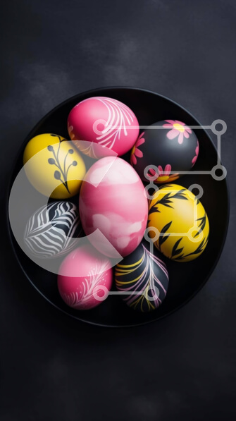 Intra Συλλεκτικό Ξύλινο Παζλ Plywood 4mm – Βαμμένα Πασχαλινά αυγά σε μαύρο μπολ Σε Ξύλινο Κουτί – Διαστάσεις: 10×10 cm – 25 κομμάτια