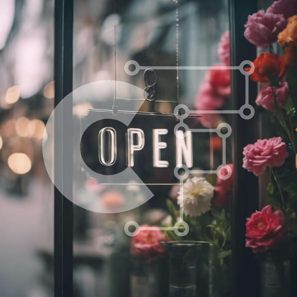 Intra Συλλεκτικό Ξύλινο Παζλ Plywood 4mm – Βιτρίνα με λουλούδια και ανοιχτή πινακίδα Σε Ξύλινο Κουτί – Διαστάσεις Puzzle: 10×10 cm – 25 κομμάτια