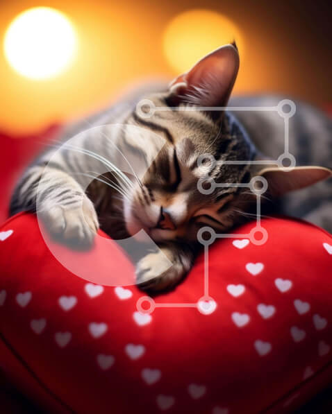 Intra Συλλεκτικό Ξύλινο Παζλ Plywood 4mm – Γάτα κοιμάται σε μαξιλάρι σε σχήμα καρδιάς με φώτα Σε Ξύλινο Κουτί – Διαστάσεις: 10×10 cm – 25 κομμάτια