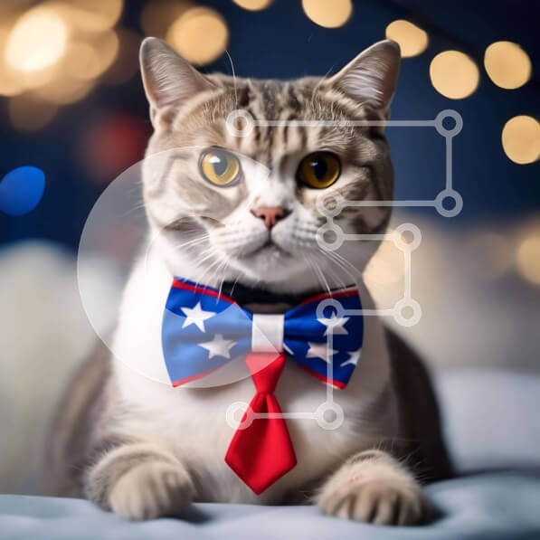 Intra Συλλεκτικό Ξύλινο Παζλ Plywood 4mm – Γάτα με παπιγιόν με αμερικανική σημαία στο κρεβάτι Σε Ξύλινο Κουτί – Διαστάσεις: 10×10 cm – 25 κομμάτια
