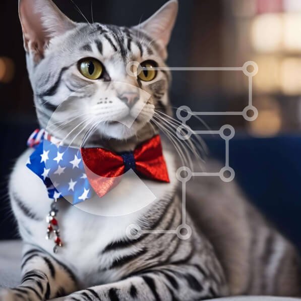 Intra Συλλεκτικό Ξύλινο Παζλ Plywood 4mm – Γάτα με παπιγιόν με αμερικανική σημαία στον καναπέ Σε Ξύλινο Κουτί – Διαστάσεις: 10×10 cm – 25 κομμάτια
