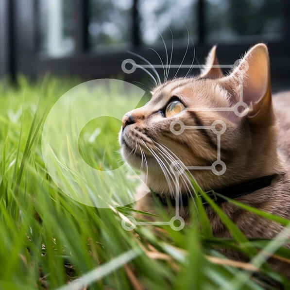 Intra Συλλεκτικό Ξύλινο Παζλ Plywood 4mm – Γάτα που κάθεται στο γρασίδι και κοιτάζει ψηλά στον ουρανό Σε Ξύλινο Κουτί – Διαστάσεις: 10×10 cm – 25 κομμάτια