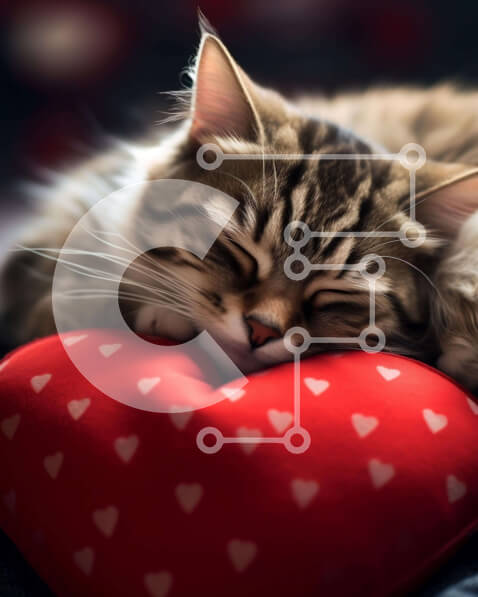 Intra Συλλεκτικό Ξύλινο Παζλ Plywood 4mm – Γάτα που κοιμάται σε μαξιλάρι σε σχήμα καρδιάς Σε Ξύλινο Κουτί – Διαστάσεις: 10×10 cm – 25 κομμάτια