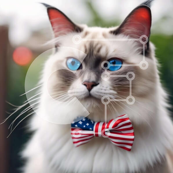 Intra Συλλεκτικό Ξύλινο Παζλ Plywood 4mm – Γάτα που φορά παπιγιόν με αμερικανική σημαία Σε Ξύλινο Κουτί – Διαστάσεις: 10×10 cm – 25 κομμάτια