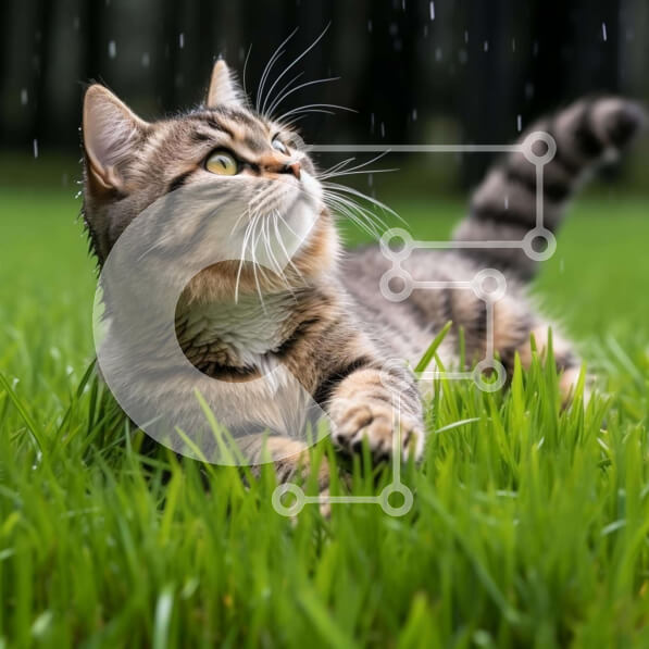 Intra Συλλεκτικό Ξύλινο Παζλ Plywood 4mm – Γάτα που χαλαρώνει στο γρασίδι στη βροχή Σε Ξύλινο Κουτί – Διαστάσεις: 10×10 cm – 25 κομμάτια