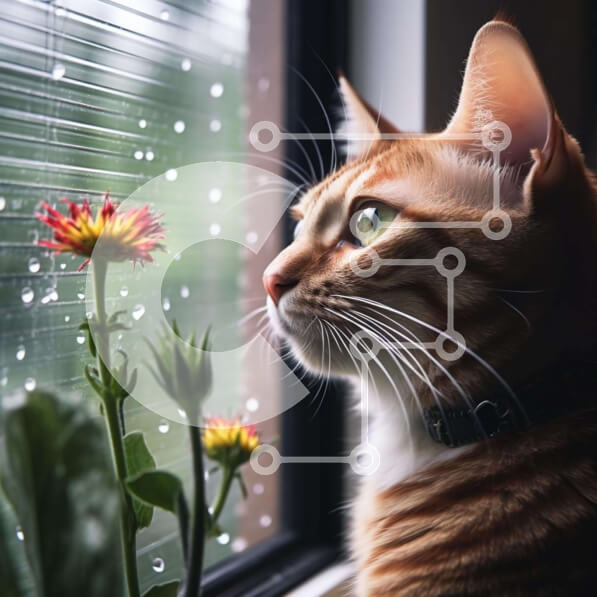 Intra Συλλεκτικό Ξύλινο Παζλ Plywood 4mm – Γάτα στο περβάζι παραθύρου που παρακολουθεί το λουλούδι Σε Ξύλινο Κουτί – Διαστάσεις: 10×10 cm – 25 κομμάτια